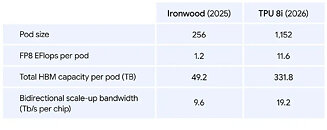 • SRAM capacity in TPU 8i was sized for the KV cache footprint of reasoning models at production scale.