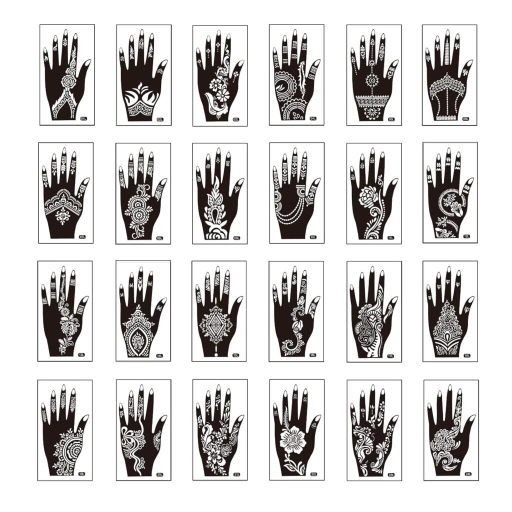 24 Sheets Henna Tattoo Stencils Kit for Hand, Indian Arabian Temporary Tattoo Template Mehndi Stencil Stickers