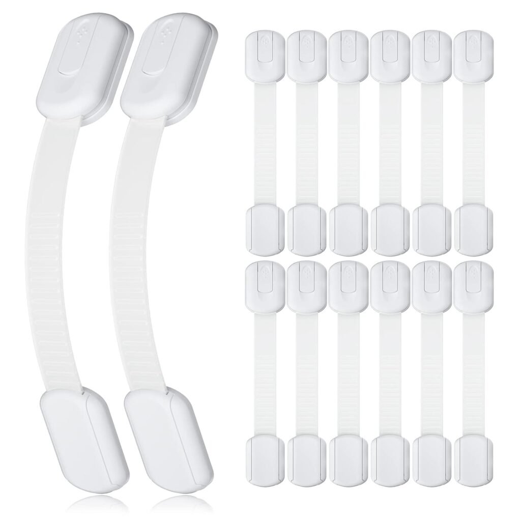 10 Pack Cabinet Locks Baby Proofing, Child Proof Cabinet Locks with 3M Adhesive – Easy Installation with Adjustable Straps, Multi-Purpose Child Safety Latches for Drawers Fridge Trash Cans Toilets