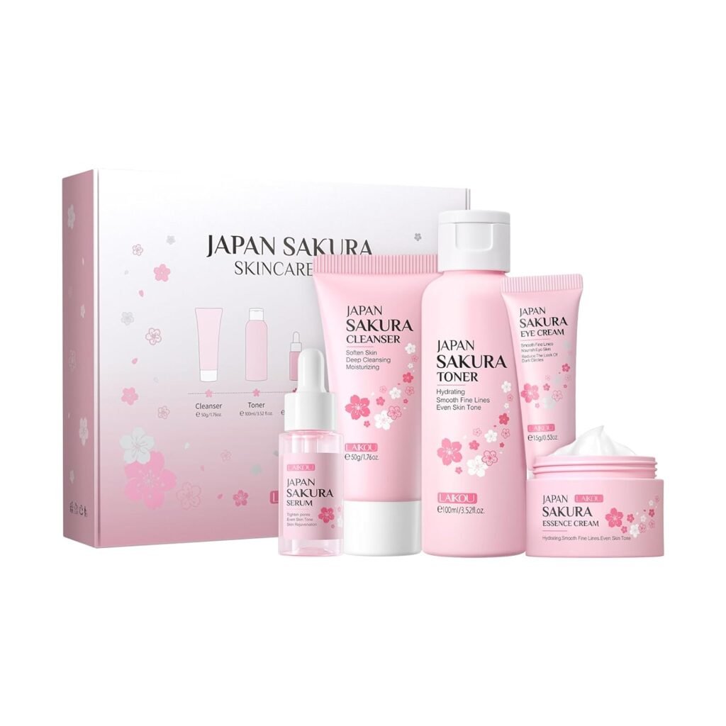 LAIKOU Skin Care Set JAPAN SAKURA Women Beauty Gift Sets Skin Care Kit with Cleanser, Toner, Serum, Eye Cream, Face Cream Travel Kit for Women Teen Girls Mom Daughter Birthday TSA-friendly Sizes 5pcs