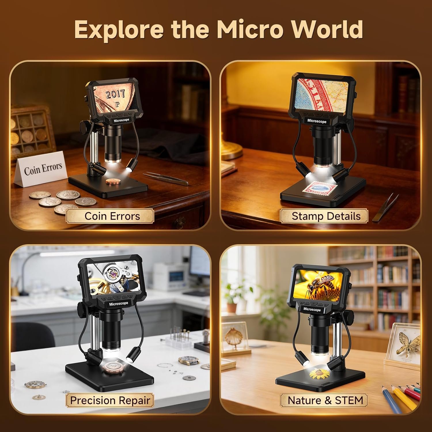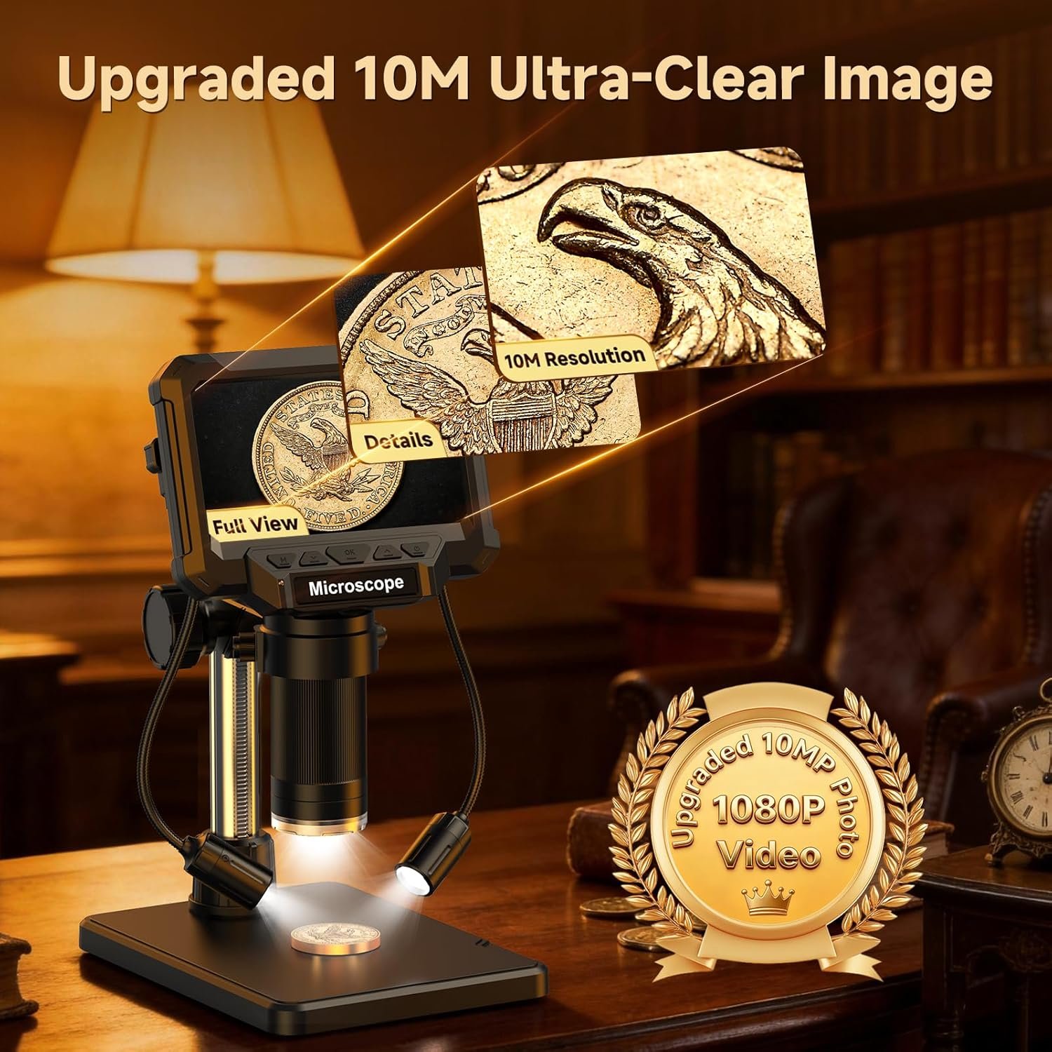4.3″ Coin Microscope 1000X for Error Coins, Digital LCD Magnifier with Anti-Glare Side Lights, 1080P USB PC View (Win/Mac), Rechargeable Scope for Numismatic Grading & Mint Marks