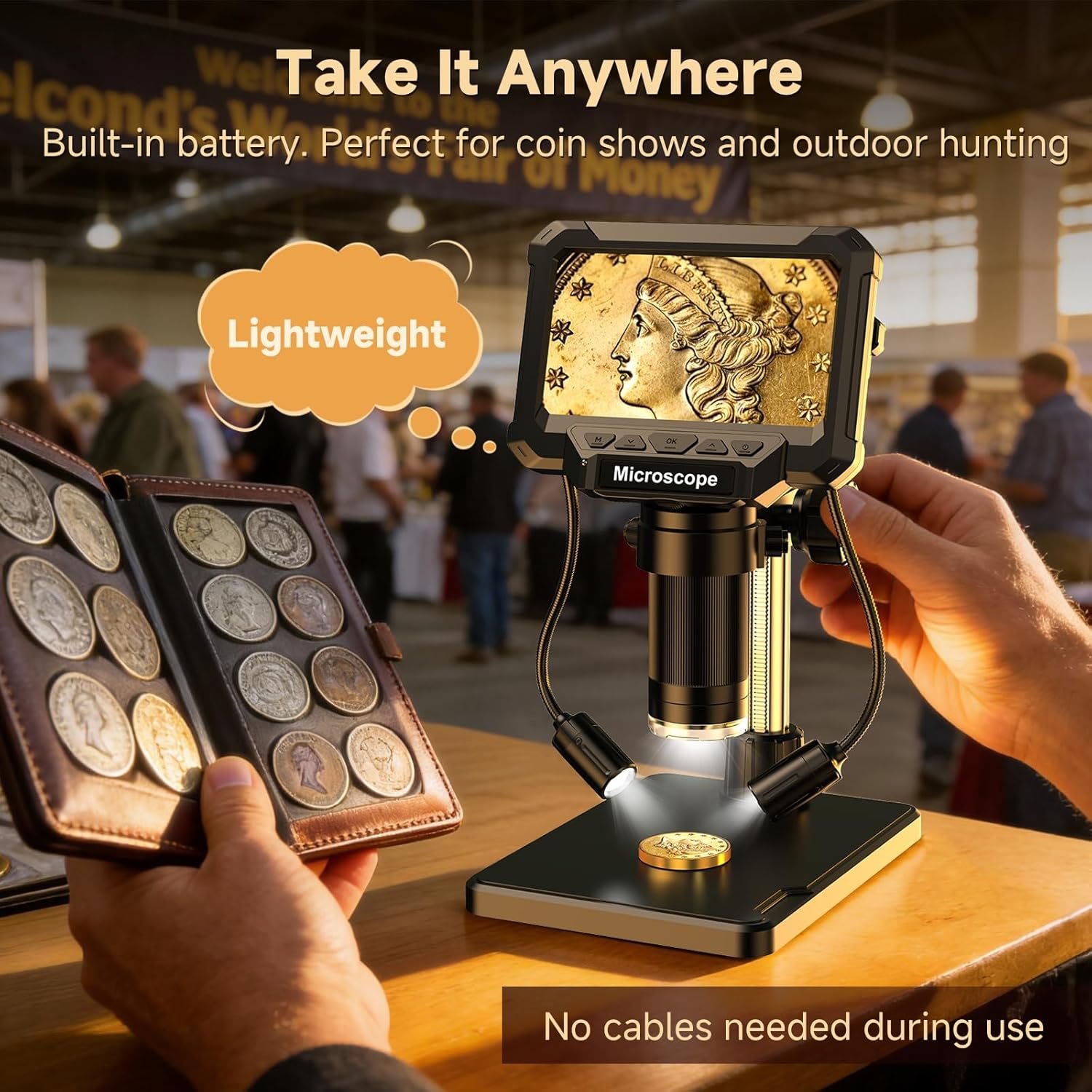 Ergonomic Coin Roll Hunting: Replaces straining handheld loupes with a 4.3-inch IPS Display. The 1800mAh rechargeable battery and stable base allow for extended Coin Roll Hunting (CRH) sessions anywhere, from desk sorting to coin show trade tables, without neck fatigue