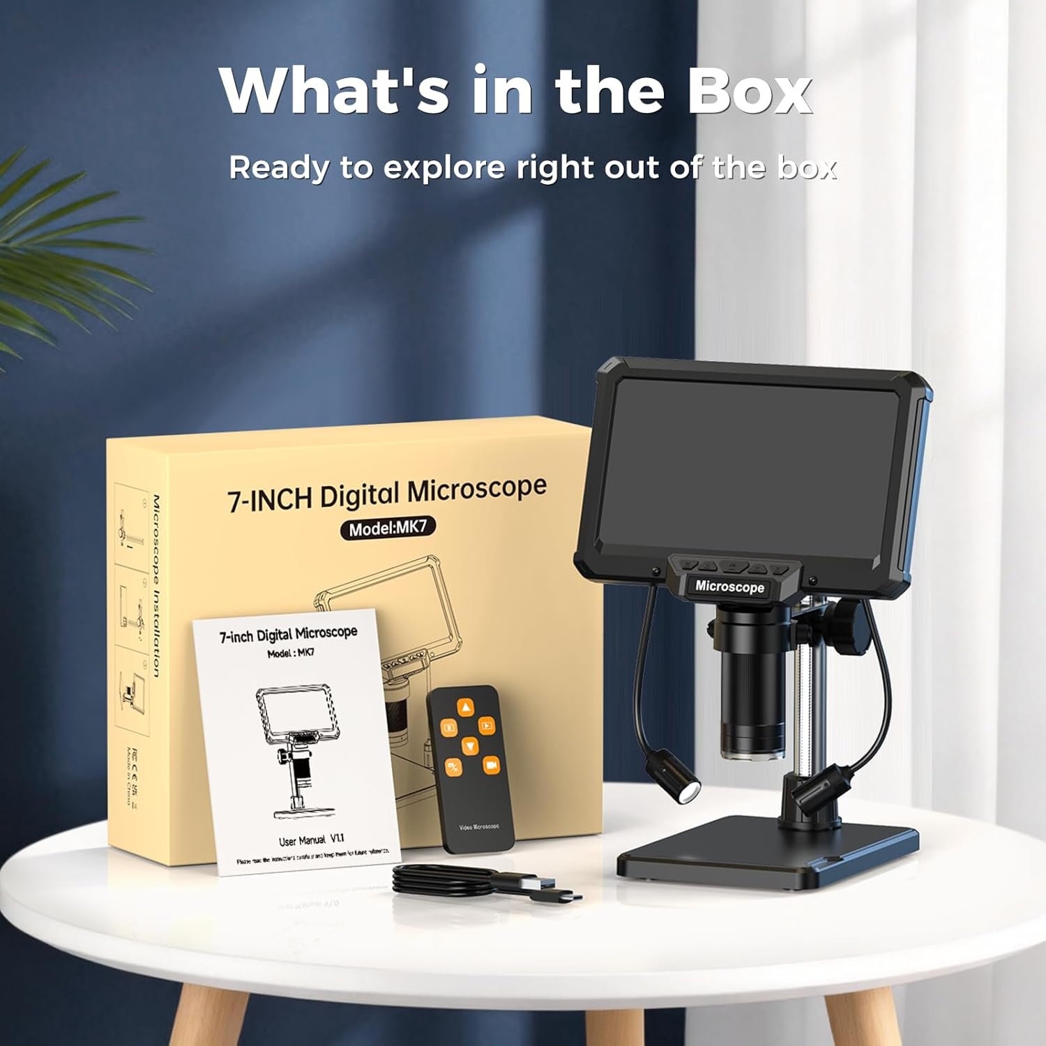 7″ Digital Soldering Microscope with Remote for Electronics Repair, 1200X IPS Screen PCB Magnifier, 16M 1080P HDMI/USB Output, 2 Gooseneck Side Lights for SMD Microsoldering (MK7)