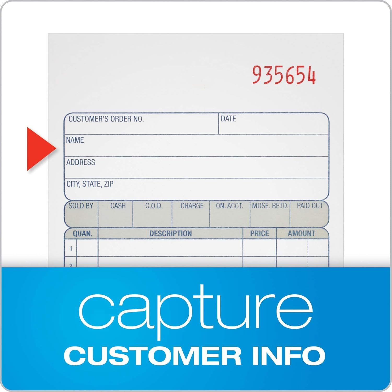 CONSECUTIVELY NUMBERED: Large 6-digit numbers in the upper right hand corner help you thumb through orders quickly