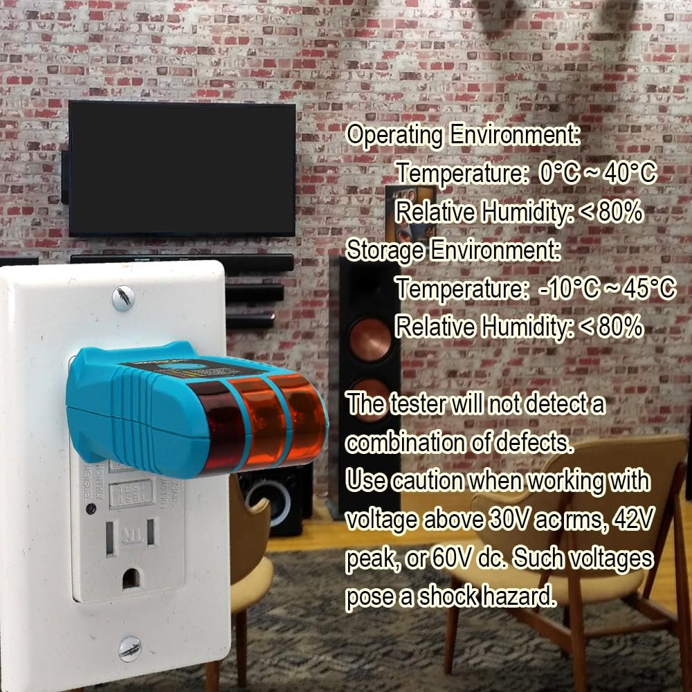 GFCI Test Button & Multiple Detection: Socket Outlet Analyzer Tester,DETECT WIRING FAULTS of open ground,open neutral,open hot,dual open (neutral and ground),reversed hot/ground,and reversed hot/neutral.Please note that this tester does not indicate ground quality or reversal of grounded and grounding conductors.