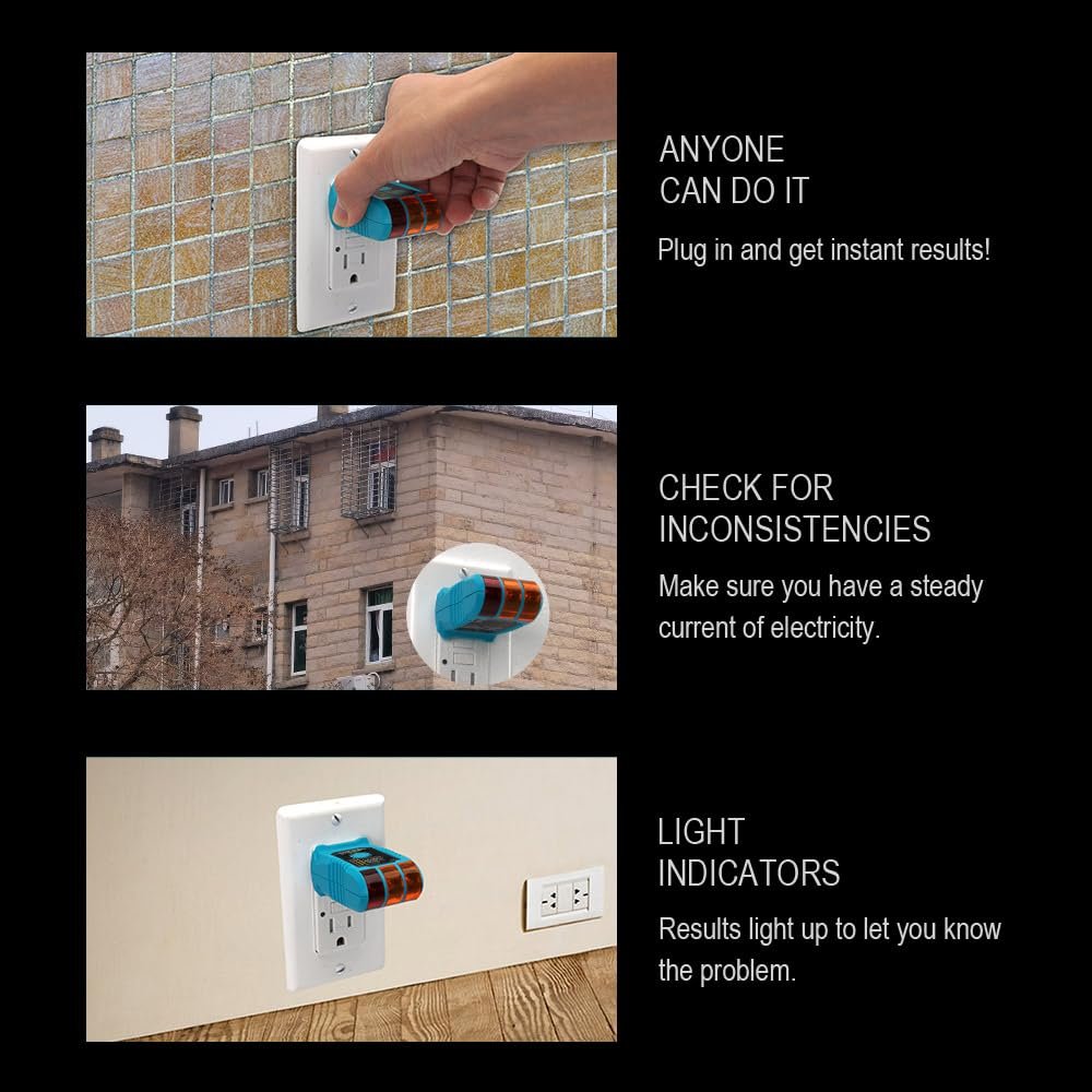 Easy To Read: Plug Tester for Electrical Outlets will tell you based on the color coded lights whether or not the job was done correctly, or if the outlet has power,which is important if you don’t want to get zapped.Easy understanding chart on the tester helps the LED light -based results,for easy visual indication.