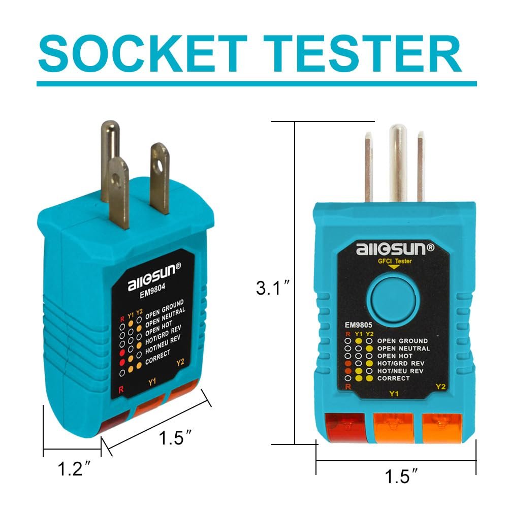 allsun GFCI Electrical Outlet Receptacle Tester,Circuit Tester,GFCI Detect Faulty Wiring Status Socket Checker,Standard 95-125 VAC, 3-Wire Light Improper Wiring Indicator(EM9805)