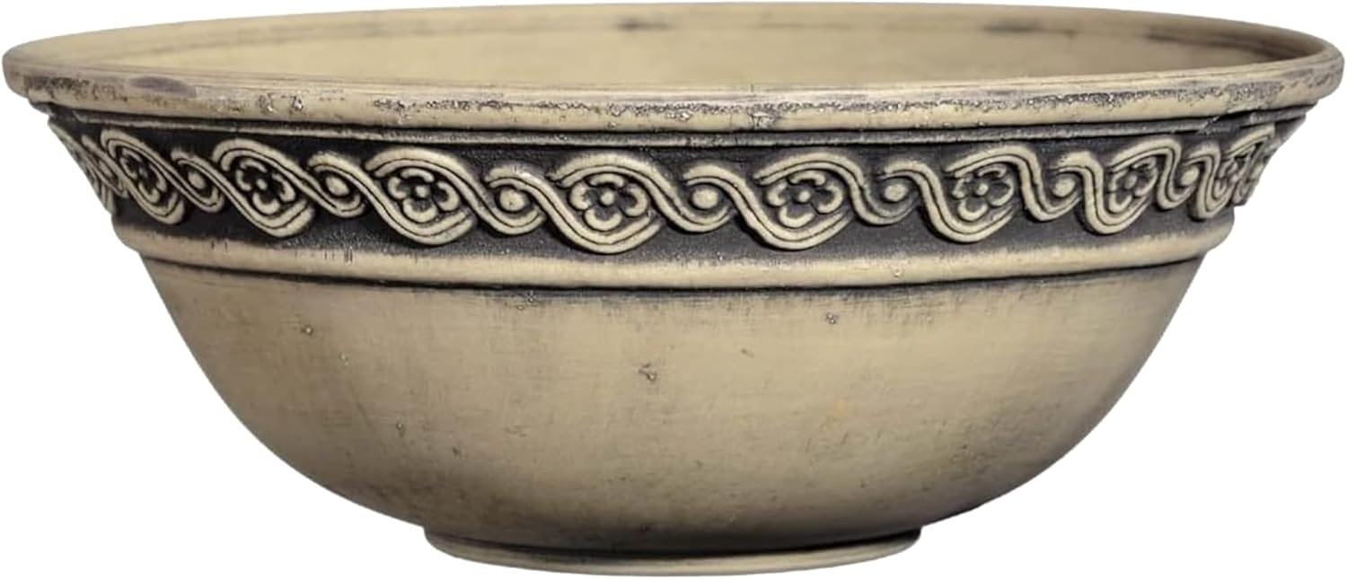 Classic Home and Garden Corinthian Shallow Planter with Drainage – Decorative Garden Bowl Planter for Succulents, Flowers, & More – UV Resistant Wide Plant Bowl for Indoors/Outdoors (12” Ivory Ash)