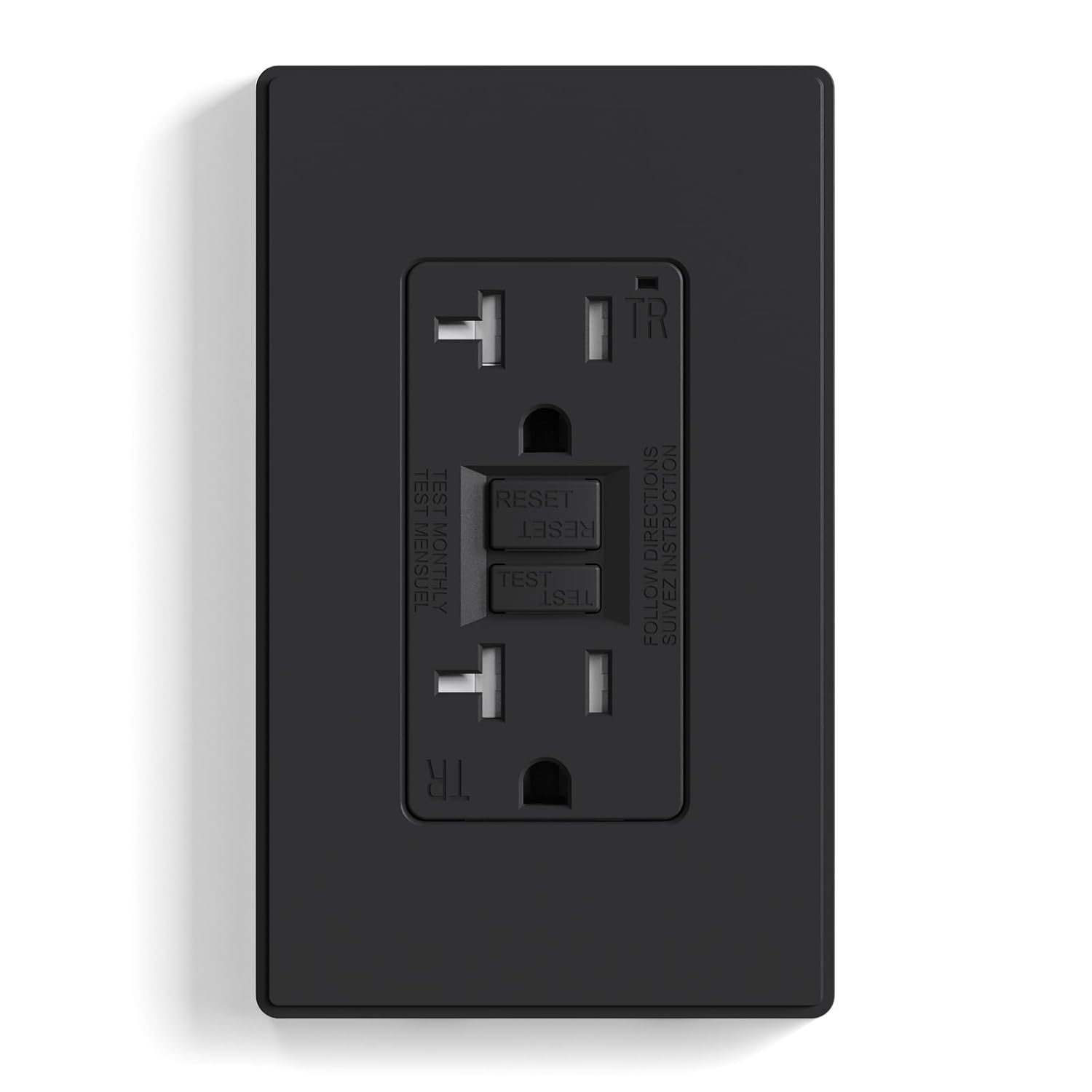 ELEGRP GFCI Outlet 20 Amp, Self-Test GFI Electrical Outlet with Thinner Design, TR Tamper Resistant GFCI Receptacle, Ground Fault Circuit Interrupters with Wall Plate, UL Listed, Matte Black, 1 Pack
