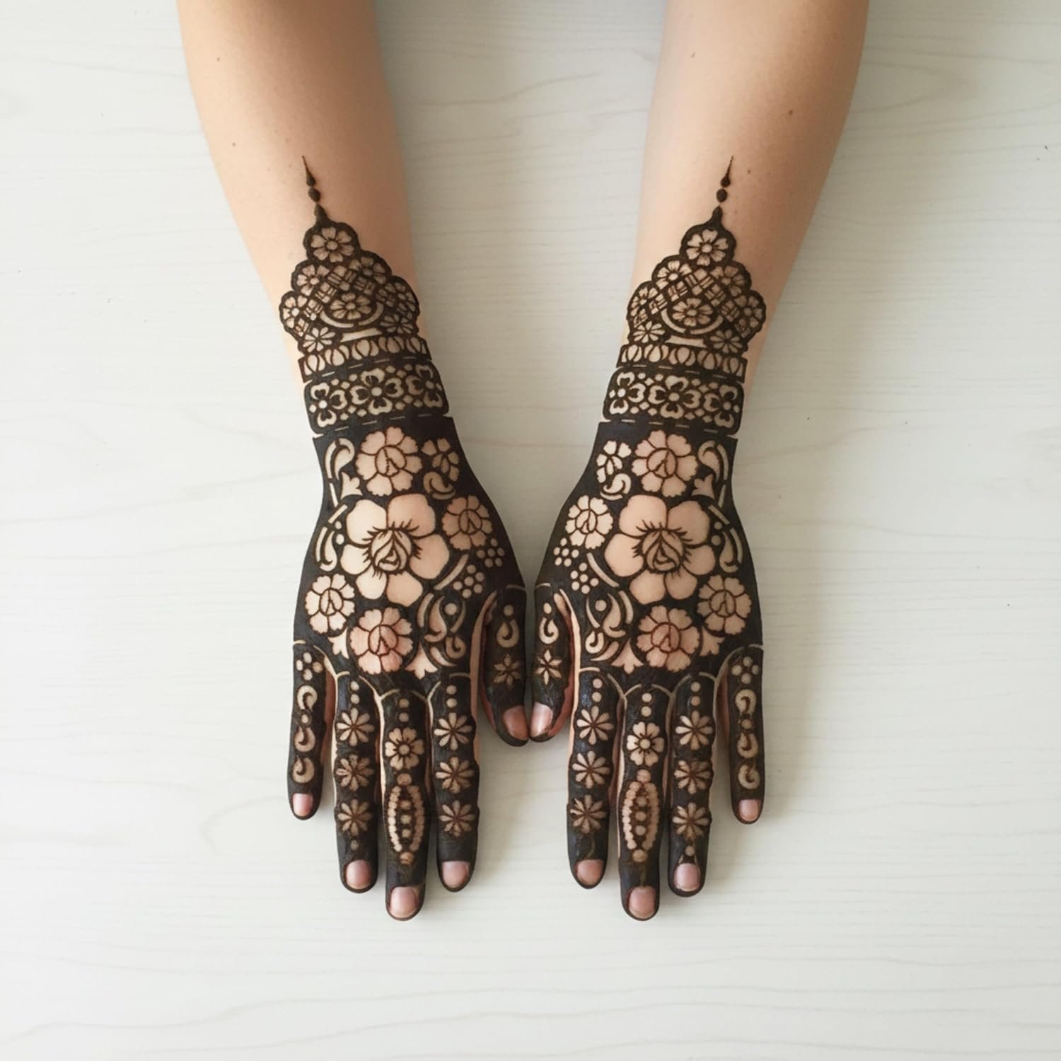 🌸 Traditional Floral Design – Beautiful mehndi artwork for hands.