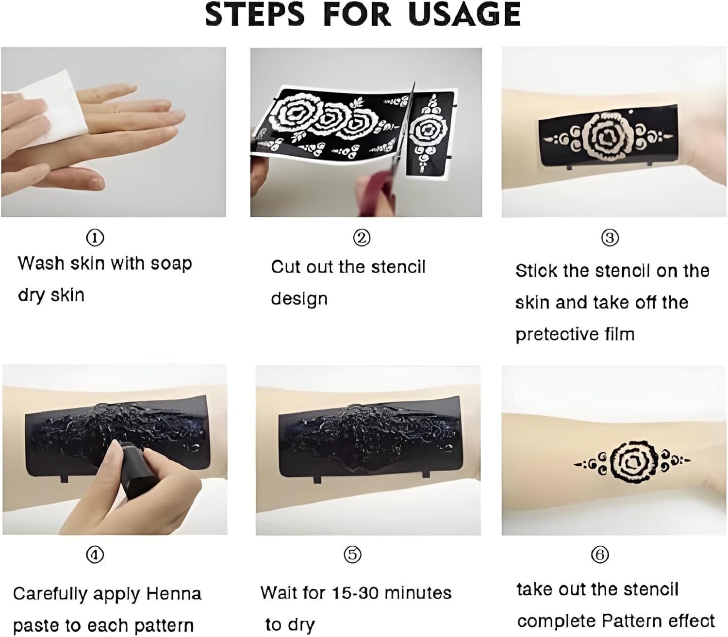 🖤 Skin-Safe & Easy Peel – Comfortable, safe, and effortless mehndi application.