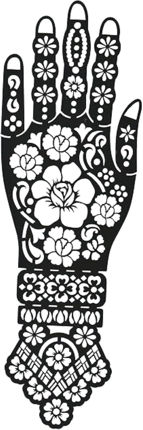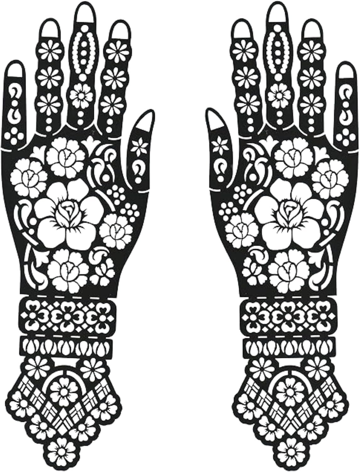 Give your hands a stunning look with this floral mehndi sticker stencil. Designed with traditional patterns, it makes mehndi application simple, neat, and beautiful. Perfect for brides, festive occasions, Karwa Chauth, Diwali, Eid, and parties, this reusable stencil can be applied easily with henna cones or body paint. A great choice for both beginners and experts, it ensures clean and attractive results every time.