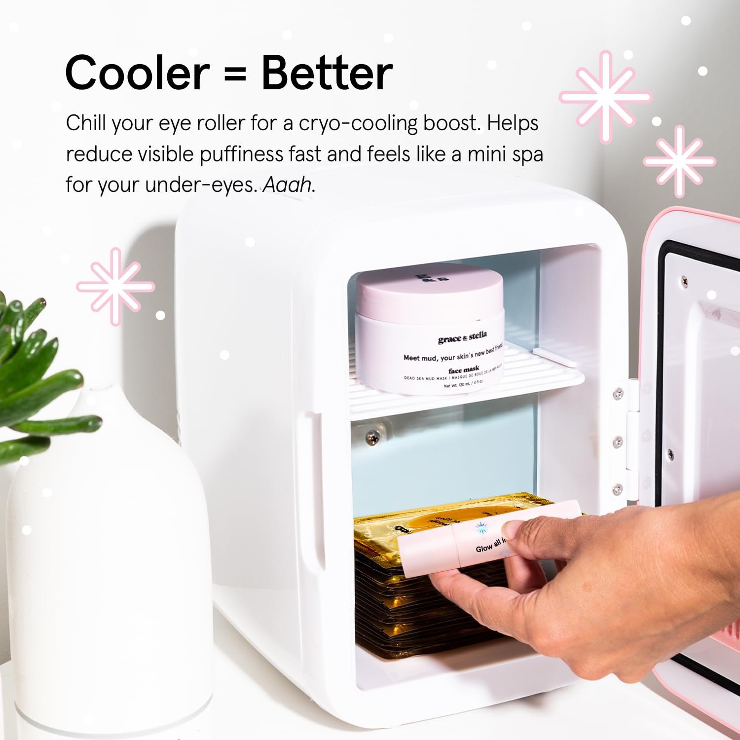 How To Get The Best Glow: Roll on this eye roller for puffy eyes twice daily for best results. Keep it in the fridge to activate its cryo-cooling effect. If the roller’s stuck, give it a shake or warm in your hands.
