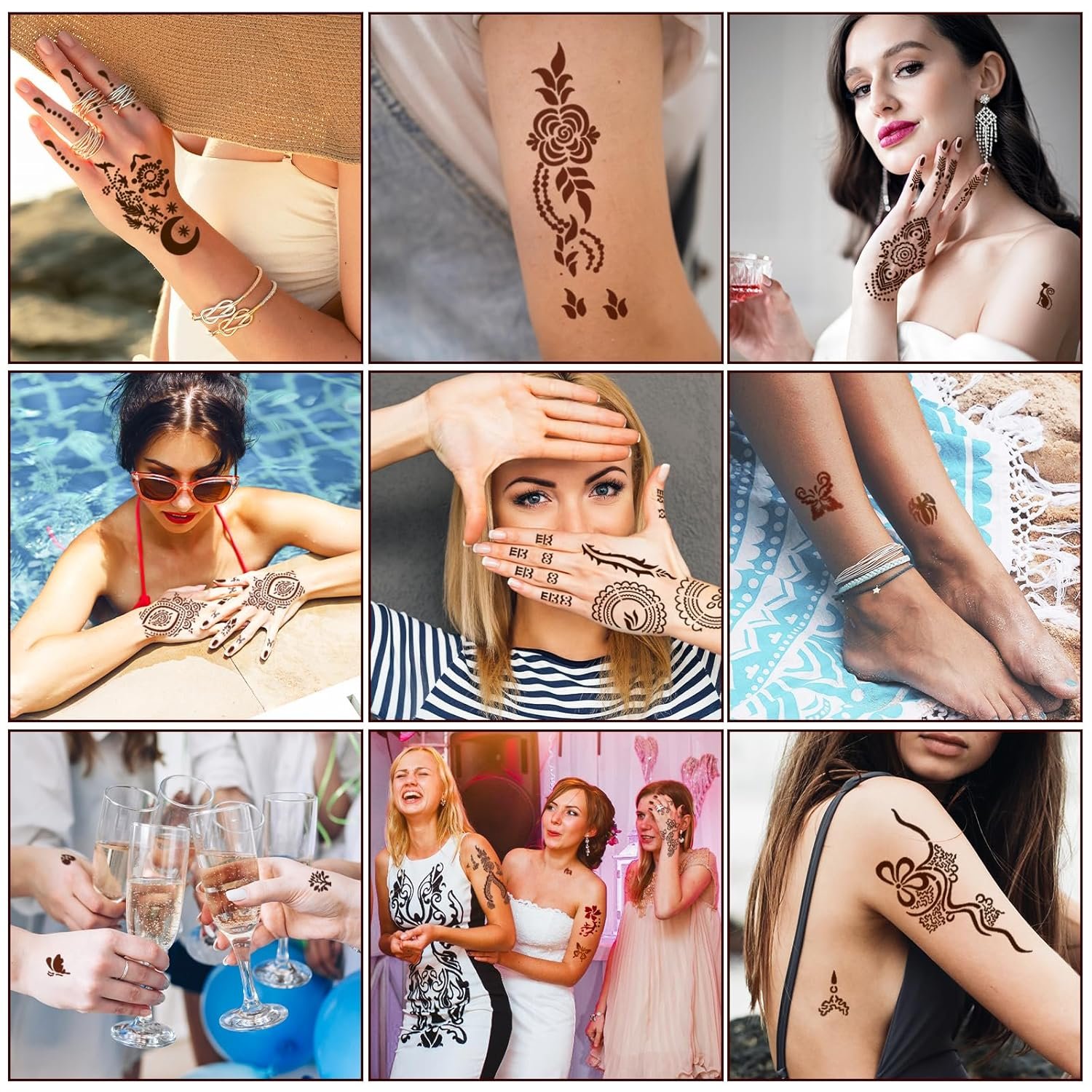 Unleash your inner artist—whether you’re a beginner or a creative pro. With over 500 designs covering hands, feet, and face—from florals and geometrics to tribal symbols—this henna stencil kit, featuring henna stencils for hands, tattoo stencils, and face paint stencils, meets all your DIY, selfie, and creative event needs. Perfect for festivals, beach vacations, beauty workshops—wherever self‑expression matters.