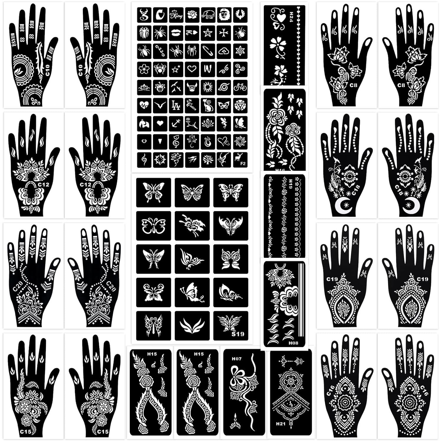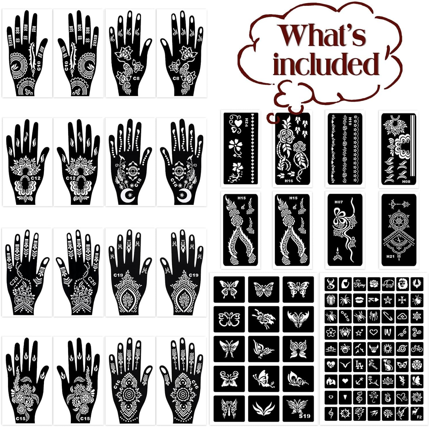 HENNA STENCILS FOR ENDLESS CREATIVITY – This all-in-one stencil kit includes 18 sheets reusable henna stencils for hands, body, and face. From floral patterns to tribal, symbols, and face paint stencils, there’s a design for everyone—kids, teens, and adults.