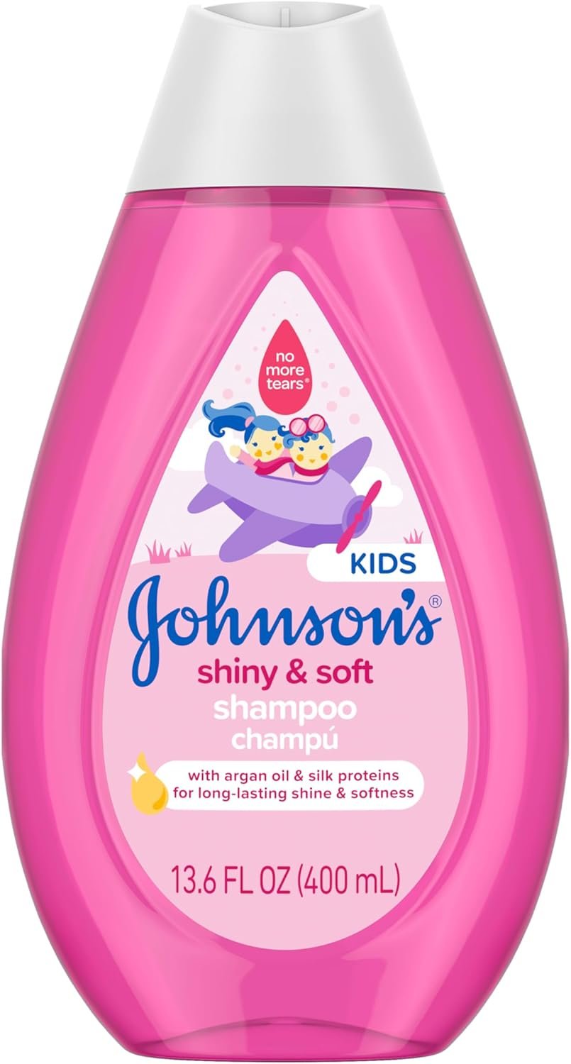 Johnson’s Shiny & Soft Kids’ Shampoo with Argan Oil & Silk Proteins, Daily Kids’ Hair Wash Gently Cleanses & Boosts Natural Shine & Softness, No Added Parabens & Sulfates, 13.6 fl. oz