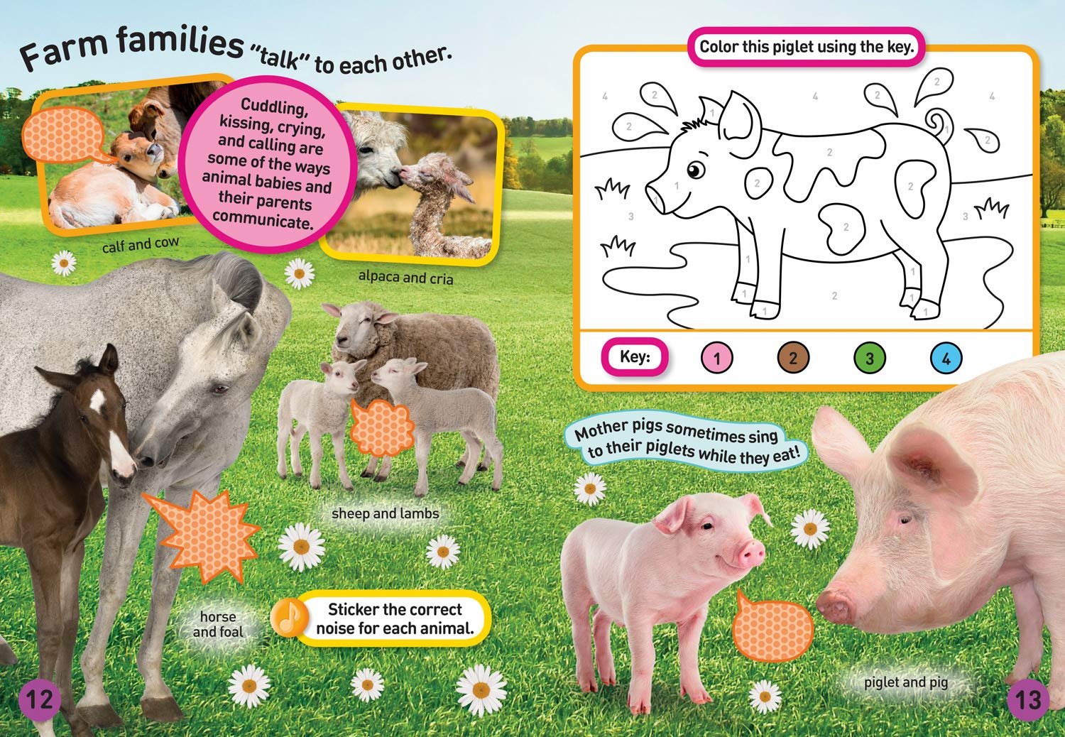 The Baby Animals sticker book is chock-full of the cutest creatures on the planet: pandas, piglets, wolf cubs, ponies, polar bears, elephants, bunnies, kittens, puppies, and many more. With a fun, brightly colored design and loaded with animal facts and games–such as mazes, counting, matching and more–this book is sure to provide endless entertainment.