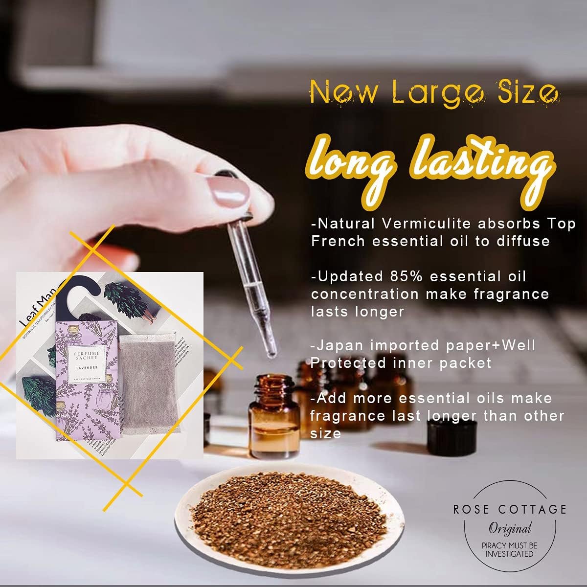 [Safe Material Made Every Breath Have A Guarantee]Made of top Essential oil created by french professional perfumers.You must haven’t smell such unique pure and fresh fragrance .This large size sachets add more essential oils than the small size,making room fresheners dissipates well while lasts longer.You can absolutely trust that they are also great as shoe odor eliminator and trash can deodorizer, keeping your every breath fresh and safe!