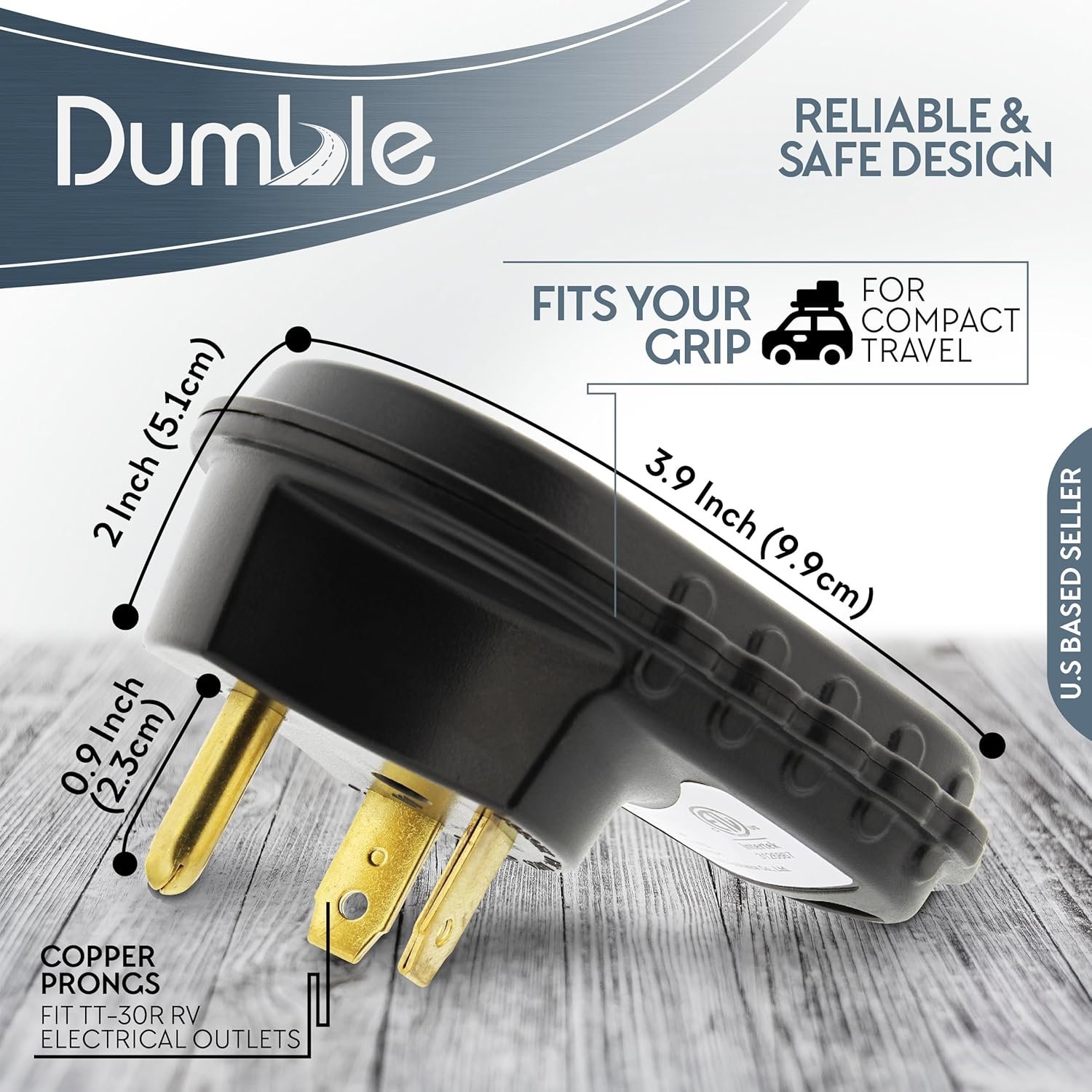 [Fits Your Grip]: 3.9-inch (9.9cm) tall RV LED tester electric plug checker has a 2-inch (5.1cm) width to fit your hand for compact travel; 0.9-inch (2.3cm) long prongs fit TT-30R RV electrical outlets
