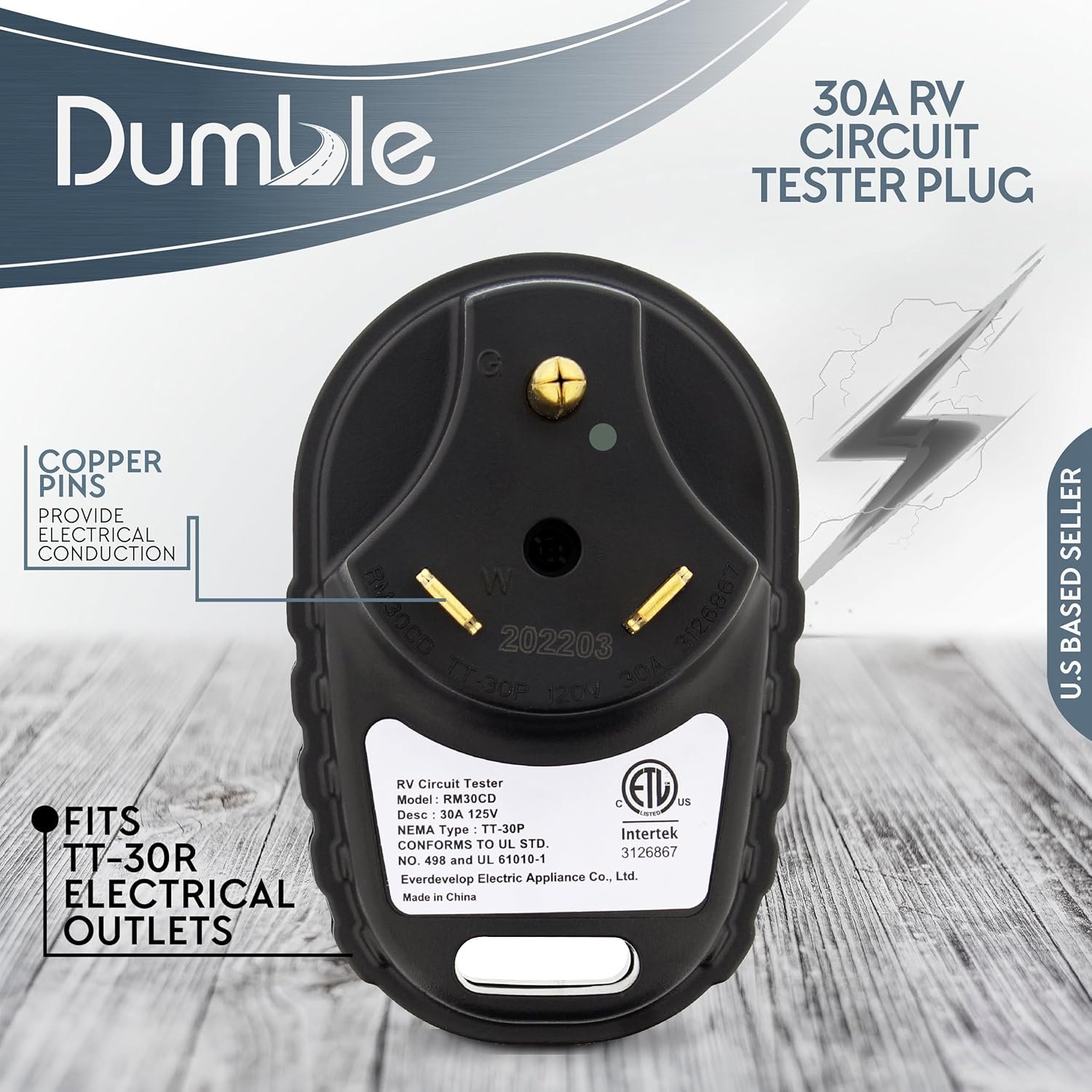[Test It]: Before connecting your family RV or camper to a possibly malfunctioning power source, test it with the Dumble RV Supplies 125V 30 AMP Circuit Tester; Electrical tester features a TT-30P plug type