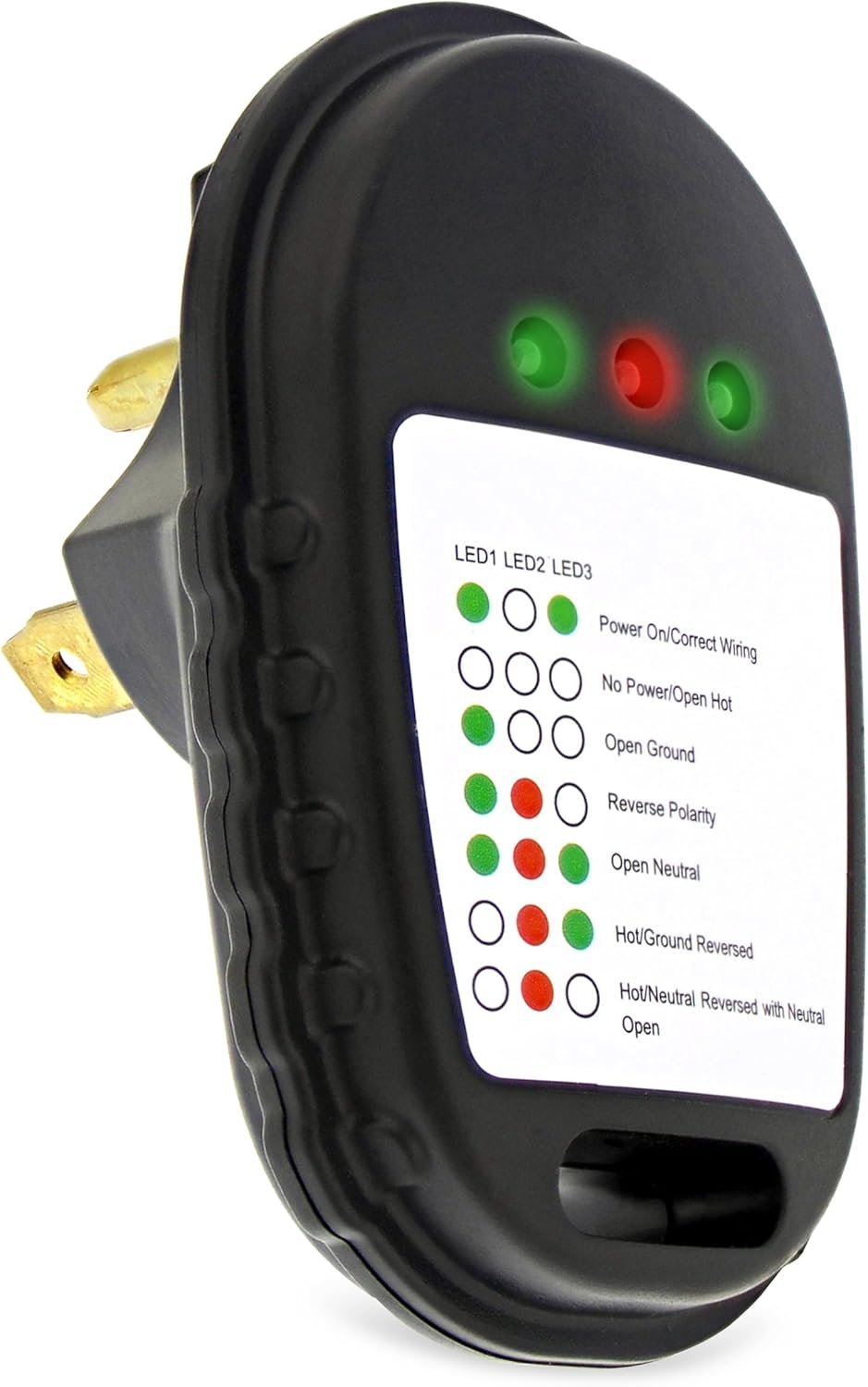 [Diagnose Issues Immediately]: 3 LED indicator lights verify correct and incorrect wiring to ensure your traveling home is safe; Smart diagnostic chart indicates Open Ground, Reverse Polarity, Open Neutral, Hot/Ground Reversed, and Hot/Neutral Reversed with Neutral Open to help identify the exact issue