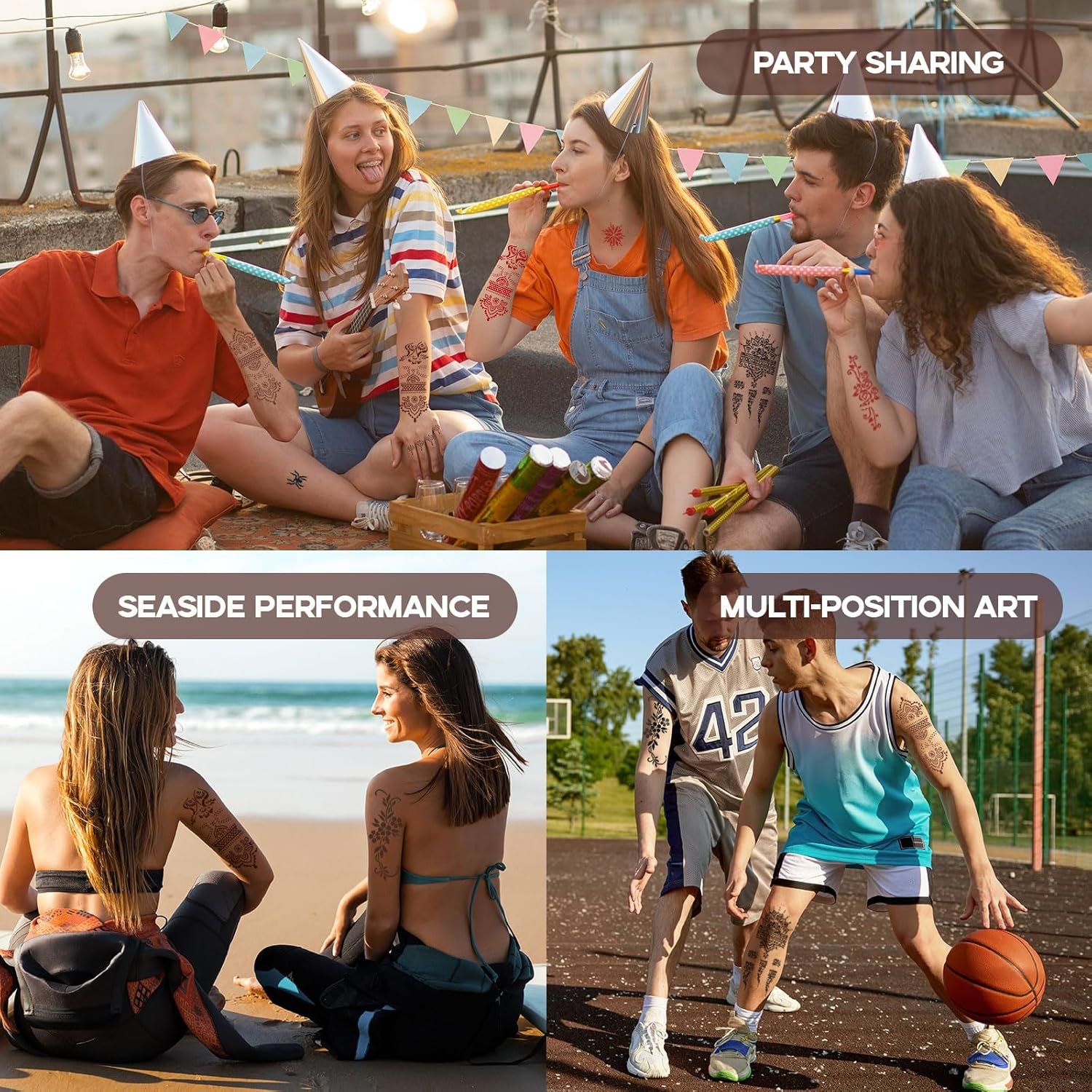 LONG-LASTING AND WATERPROOF COLOR—Swimming, exercising or sweating during daily activities are not a concern. The color retention cycle is about 3-7 days (the specific duration may vary slightly depending on the area, skin type, care, and environment). depending on water contact. This ensures your creations remain vibrant and intact for all your special occasions