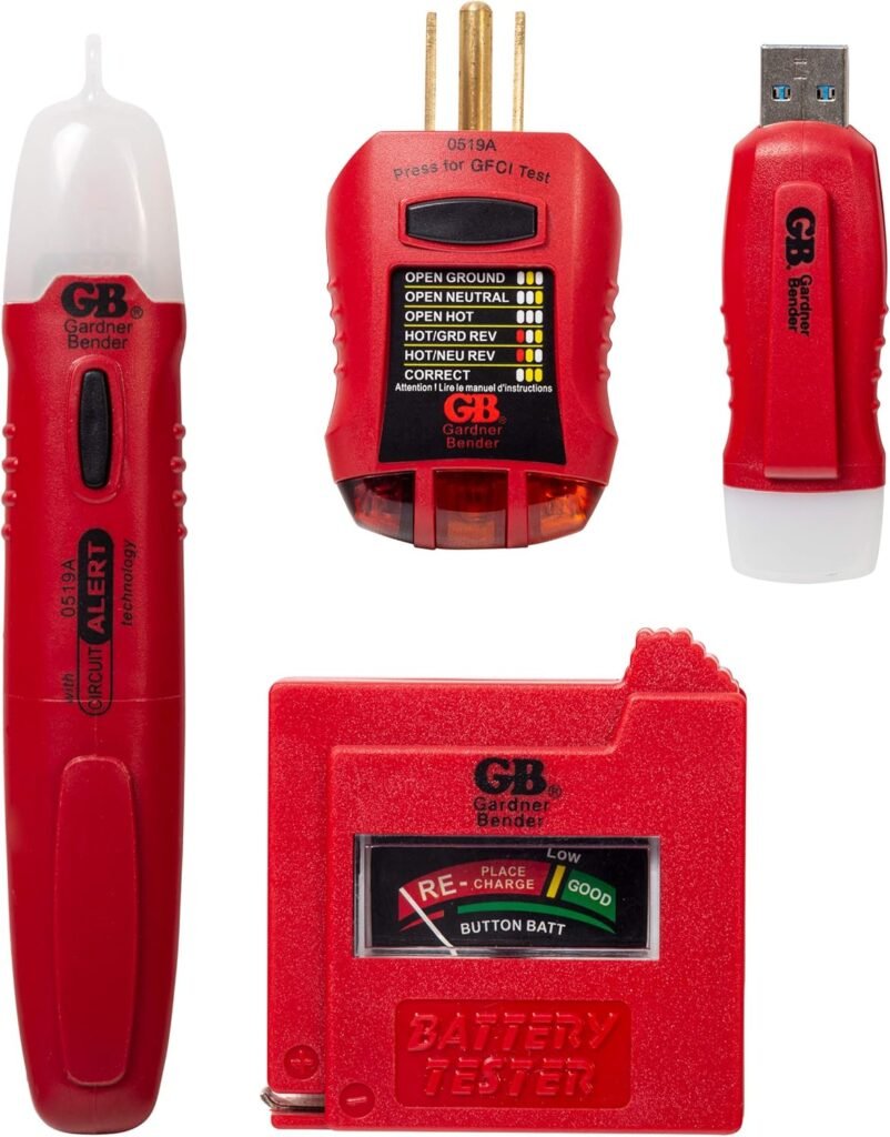 Gardner Bender Household Electrical Tester Kit; Battery, GFCI, Non-Contact Voltage, and USB Testers