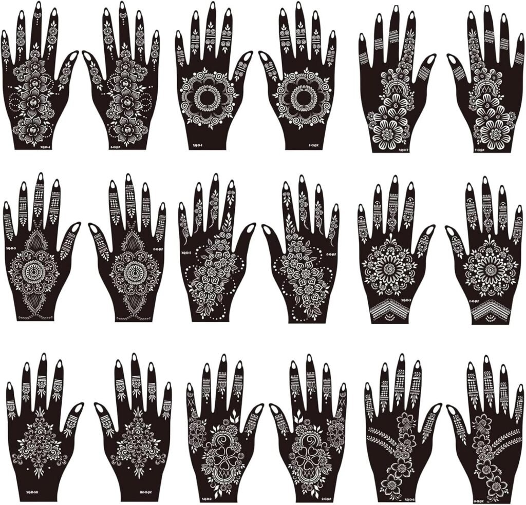 Henna Tattoo Stencils Kit, 18Temporary Tattoo Stenci Indian Mehndi Designs for Hands, Traditional Body Art