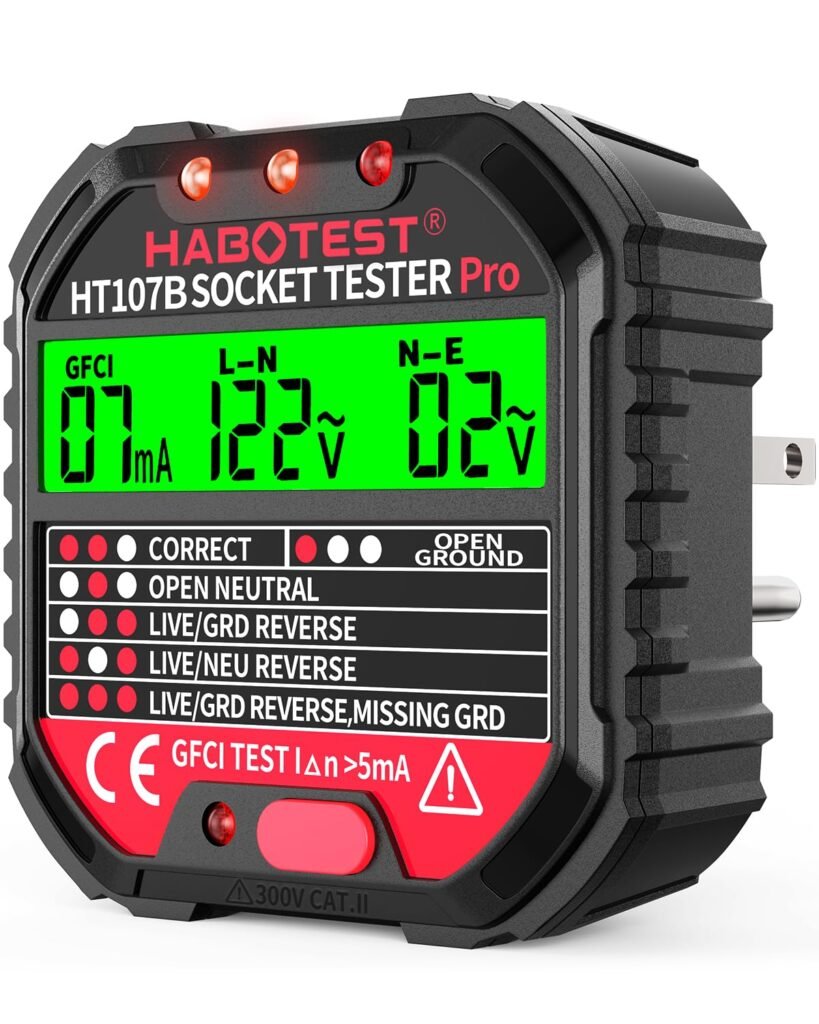 Outlet Tester for Standard North American AC – Socket Tester for GFCI, Open Ground, Open Neutral, Open Hot, Hot/Ground Reverse, Hot/Neutral Reverse, and Correct Wiring Testing