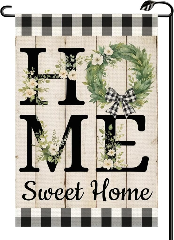 Spring Summer Home Sweet Home Magnolia Garden Flag 12×18 Inch Vertical Double Sided Buffalo Plaid Check Small Flags Farmhouse Outside Decoration For Yard (ONLY FLAG) CJ53