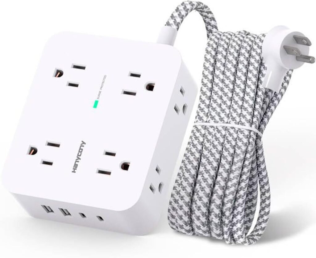 Surge Protector Power Strip – HANYCONY 8 Outlets 4 USB (2 USB C) Charging Ports, Multi Plug Outlet Extender, 5Ft Braided Extension Cord, Flat Plug Wall Mount Desk Charging Station for Home Office ETL