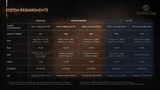 In case you want to run the game with ultra game preset at 1440p at 60 FPS, you will need some serious hardware, which includes Intel Core i5-13600K or Ryzen 9 7950X CPU with 16 GB for RAM and either an NVIDIA RTX 4080 or AMD RX 7900 XTX with 16 GB VRAM. The same ultra preset at 2160p resolution and 60 FPS requires the same CPUs, but raises the GPU requirement to NVIDIA GeForce RTX 5090. Of course, these are all native resolutions and the developers have confirmed it will support both NVIDIA DLSS and AMD FSR upscalers. The game will also need 60 GB of SSD storage space and Windows 10 OS.